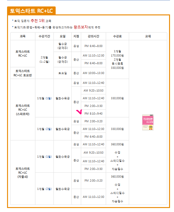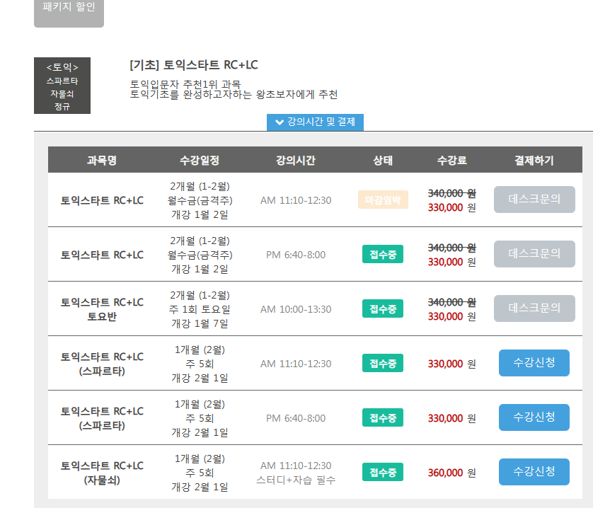 대전 시간표 -> [토익스타트 RC+LC]에서 (스파르타) 둔산점 오후 8:10 수업 듣고 싶은데 온라인 수강신청에는 해당 시간대가 없는 것 같아서요. 혹시 온라인 수강신청에 나와있는 수업만 수강 가능한가요?