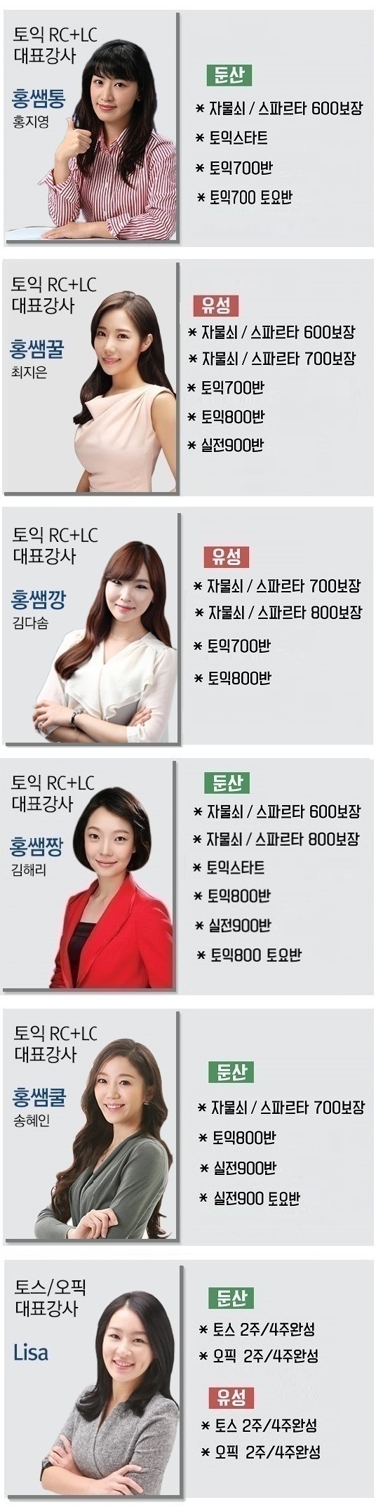 강사별 과목 안내